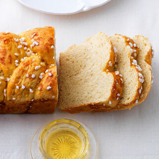 Den Teig in die Form füllen und die Teigoberfläche mit einem Messer kreuzweise ca. 1 cm tief einschneiden. Das Brot im Ofen (Mitte) ca. 30 Min. backen. Auf einem Kuchengitter vollständig auskühlen lassen.