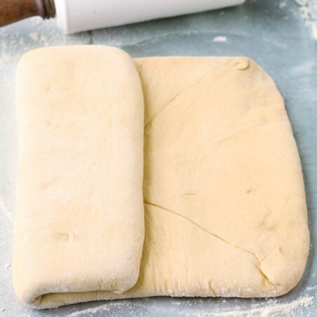 Den Teig ein drittes Mal ausrollen, falten und 20 Min. kühlen. Nun hat der Teig drei einfache Touren erhalten und kann je nach Rezept weiterverarbeitet werden.