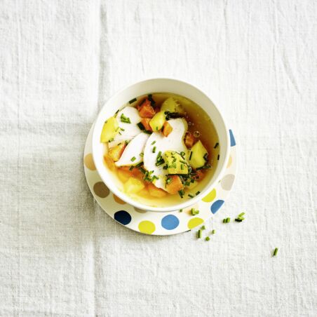 Wenn man erkältet ist, gibt es nichts Besseres als eine nährende Suppe. Bei Fieber wirkt Eiweiß negativ. Aber in der Erholungsphase spielt es eine wichtige Rolle für den Zellaufbau. Gut, wenn es wie in diesem Rezept leicht verdaulich zubereitet wird.