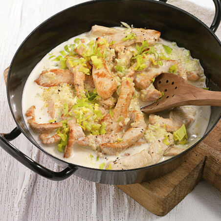 Putenfilet in Sahnesauce ist ein absoluter Hit. In dieser Sahnesauce schmoren auch noch Selleriestückchen mit und Senf und Zitronensaft sorgen für zusätzliches Aroma.
