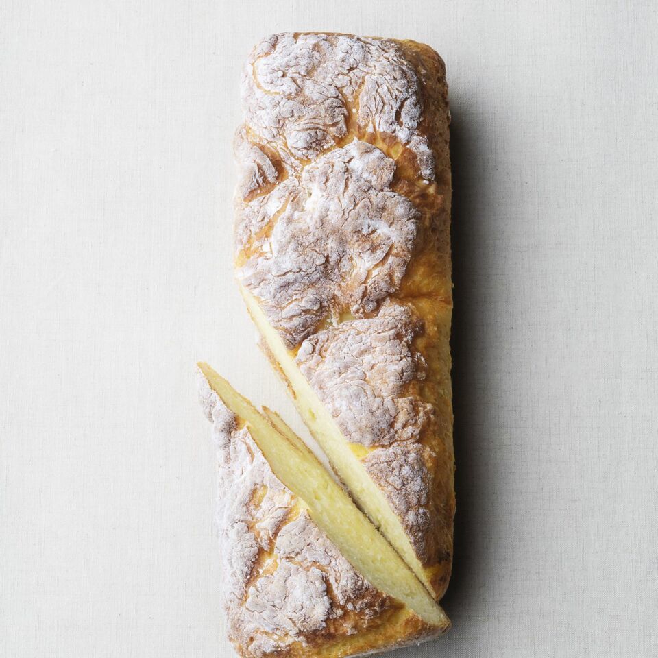Die Kastenform gut mit Butter fetten und mit Mehl ausstäuben. Den Teig auf der bemehlten Arbeitsfläche zu einem ca. 30 cm langen Brotlaib formen. Das Brot in die Form setzen, mit Wasser bestreichen, mit einem scharfen Messer 3-mal quer ca. ½ cm tief einschneiden und mit etwas Mehl bestreuen.