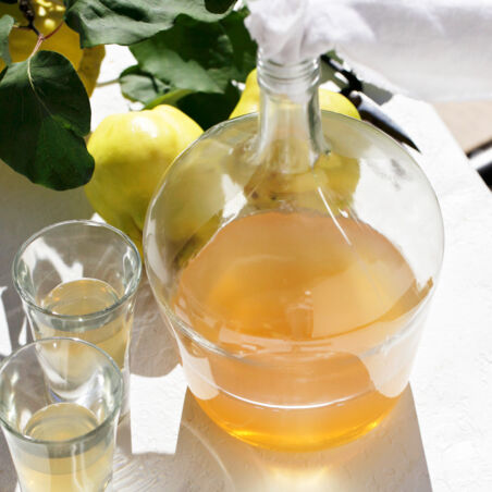 Der Quittenlikör hält mindestens 1 Jahr.