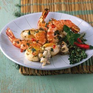 Zitronenschale und 2 EL Saft mit Kräutern, Knoblauch und Öl verrühren und mit Salz und Pfeffer würzen. Die Pilze mit der Marinade mischen und 30 Min. darin ziehen lassen. Dann den heißen Stein anheizen. Die Pilze auf jeder Seite 2-3 Min. braten.