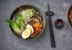 Dashi-Brühe aufkochen und vom Herd nehmen. Die Würzpaste (aus Step 3) unterrühren. Nudeln, Pilze und Gemüse auf Suppenschalen verteilen und mit Brühe auffüllen. Halbierte Eier daraufgeben. Die Suppe mit Frühlingszwiebeln bestreuen und nach Belieben mit Chilisauce servieren.
