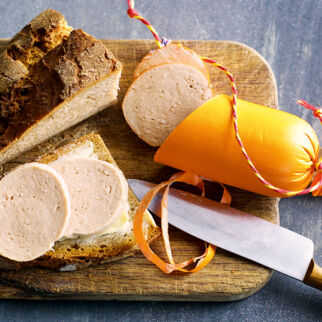 Das Füllrohr (26 mm) am Fleischwolf oder Wurstfüller befestigen und den Darm aufziehen. Die Fleischmasse in den Darm füllen, dabei Würste von ca. 10-12 cm Länge abdrehen und mit Wurstgarn abbinden. Die Würste auf Stangen gehängt bei Raumtemperatur 2 Std. trocknen lassen.