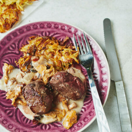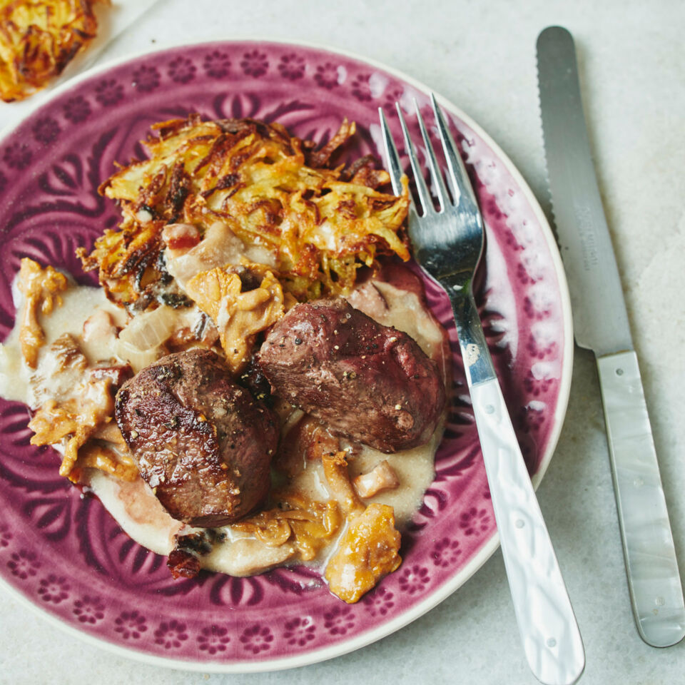Flott gemacht: Die Medaillons werden nur ganz kurz anbraten und dann im Ofen fertig gegart. Dazu schmecken Kartoffelpuffer oder dünne Bandnudeln lecker.