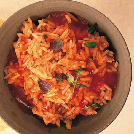 Eine tolle Beilage zu gebratenem Schweinefilet. Der schlichte Reis wird mit getrockenten Aprikosen und einer Prise Safran ein echter Hingucker.