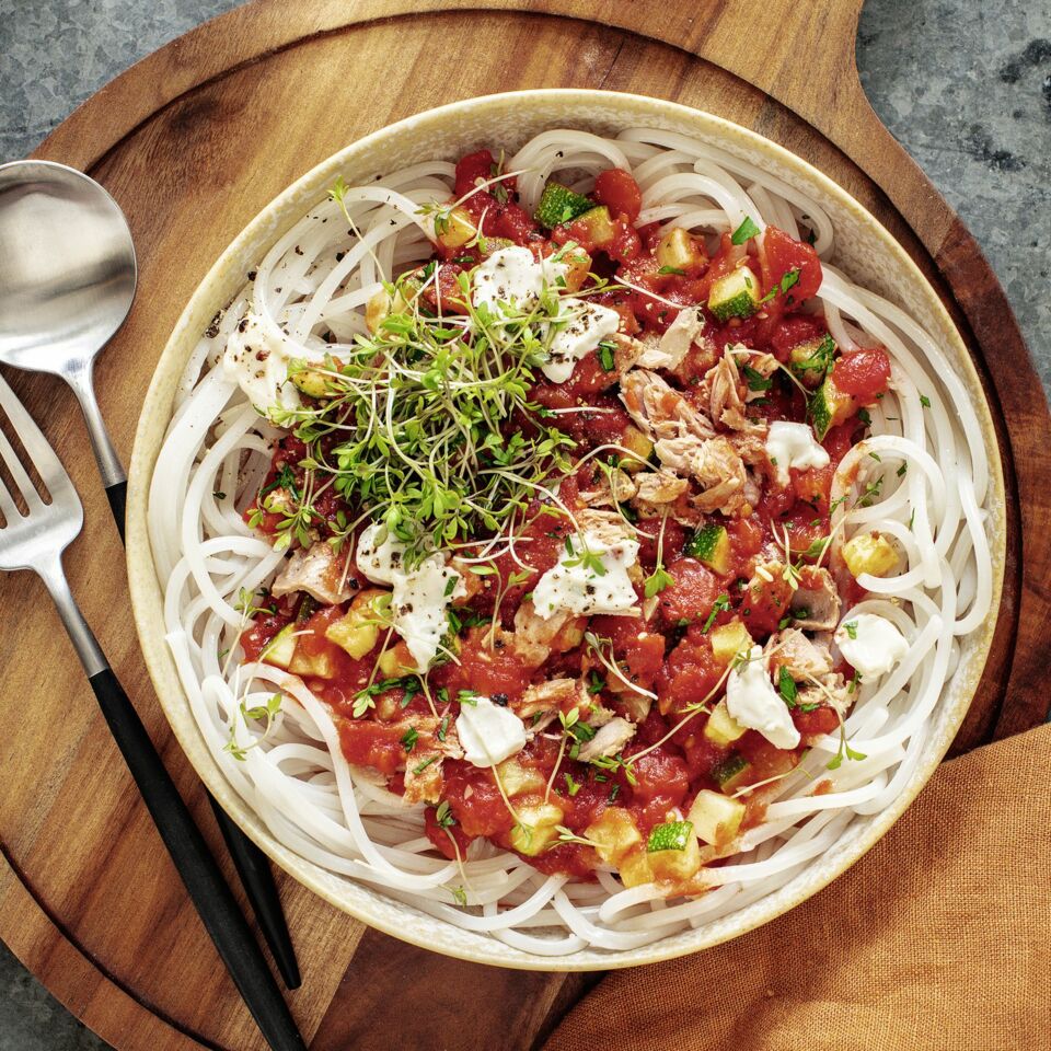 Tipp: Wer nichts Frisches im Haus hat, zaubert sich das Rezept einfach aus dem Vorrat. Dosentomaten, Thunfisch und Pasta sind deshalb immer eine gute Basis für die Speisekammer.
