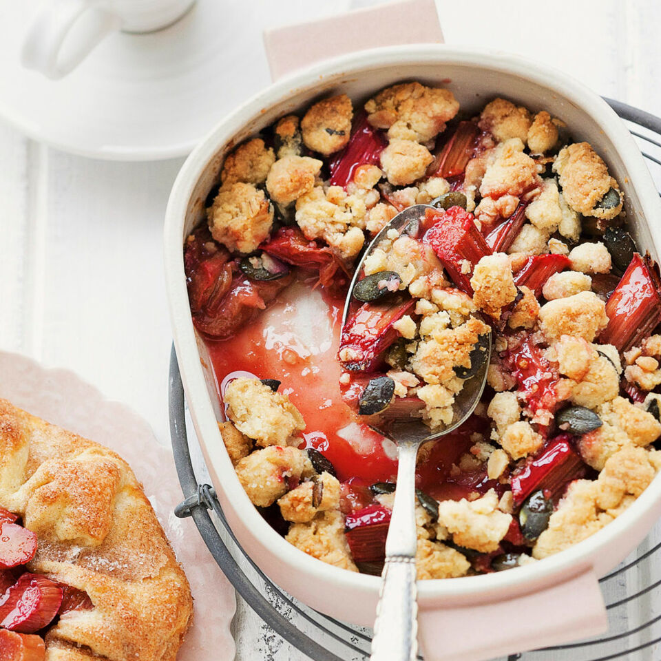 Rhabarbercrumble mit Sonnenblumenkernen