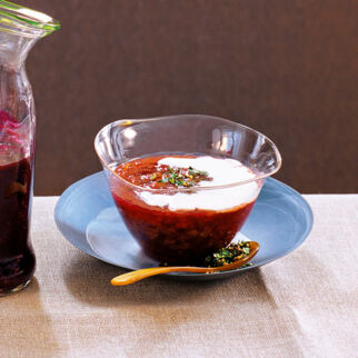 Von April bis Juli heißt es zugreifen, denn nur dann ist Rhabarber frisch am Markt erhältlich. Das säuerliche Gemüse ist der perfekte Gegenspieler zur süßen Vanillesauce.