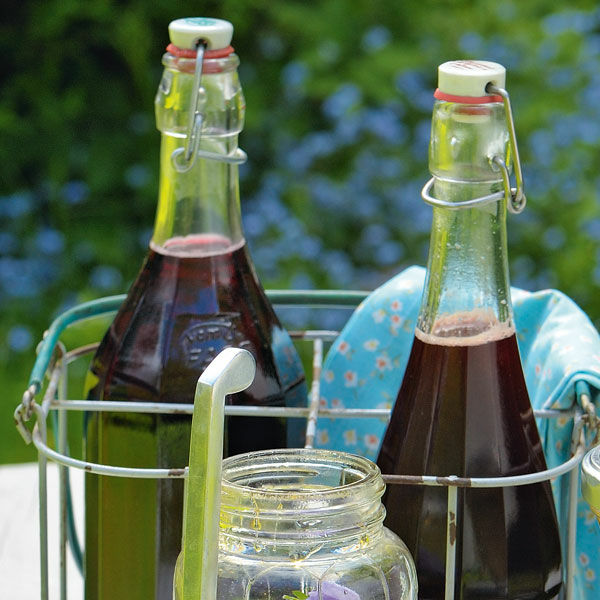Eingedickten Saft in die Flasche füllen, sofort verschließen und kühl lagern. Der Saft hält sich 3-6 Monate und schmeckt mit Sekt oder Mineralwasser gemischt.