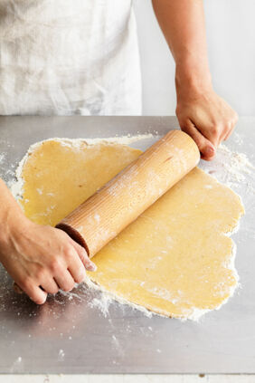 Den Mürbeteig nach dem Grundrezept (siehe Rezept-Tipp) zubereiten und ruhen lassen.