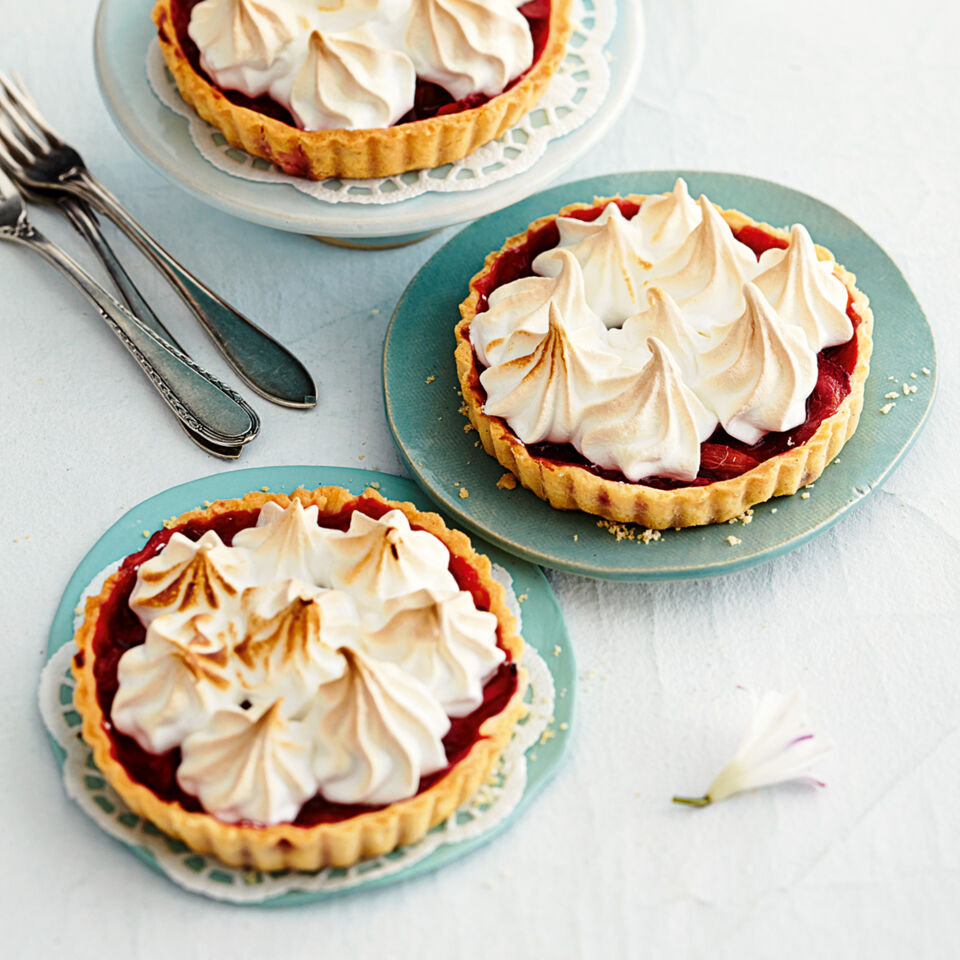 Liebe auf den ersten Blick - Rhabarber und Erbeeren sind einfach ein Traumpaar. Bei diesen Törtchen wird jeder zum Schaumschläger.