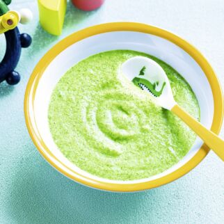 Fein pürieren Sie den Brei 20 Sek./Stufe 10. Für ältere Babys, die gröbere Konsistenzen mögen, pürieren Sie den Brei 4 Sek./Stufe 6. Wenn Sie den Brei als Suppe geben wollen, lassen Sie ihn auf 50° abkühlen, fügen noch 100 g Wasser hinzu und pürieren den Brei 60 Sek./Stufe 1.