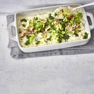 Risotto im Sauseschritt: mit vorgegartem Reis, Zucchini, Walnüssen und gaaanz viel Käse. Ach ja, Weißwein darf natürlich auch nicht fehlen (für den, der Wein mag).