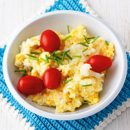 Ein tolles Gericht für Kinder: Der Blumenkohl hat sich in einem Polentabeet versteckt. Wer findet ihn?