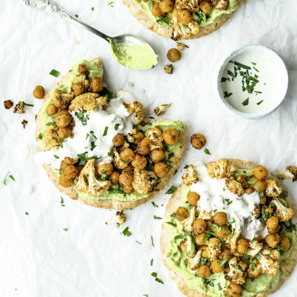 Röstkichererbsen auf Fladenbrot – vegetarisch