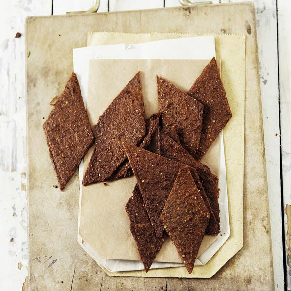 Für das Trocknen im Dörrgerät Backpapier so ausschneiden, dass sie auf die Siebe des Geräts passen, am Rand etwas Platz frei lassen. Teig daraufstreichen, ausrollen und bei 40° ca. 24 Std. trocknen. Jeweils nach der Hälfte der Zeit die Brote wenden und das Backpapier abziehen. In Stücke brechen und luftdicht lagern.
