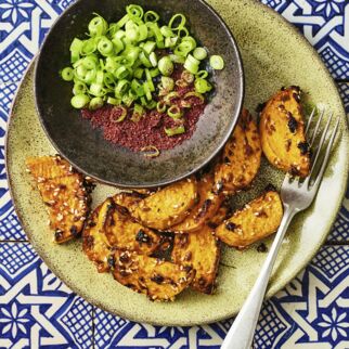 4 EL Öl, Harissa, Zitronenschale, 2 EL Zitronensaft und Kreuzkümmel mit Salz und Pfeffer verrühren. Gemüse darin wenden, bis es von den Gewürzen überzogen ist, dann auf das heiße Blech geben. Im Ofen 20-25 Min. rösten, dabei nach etwa 15 Min. wenden.