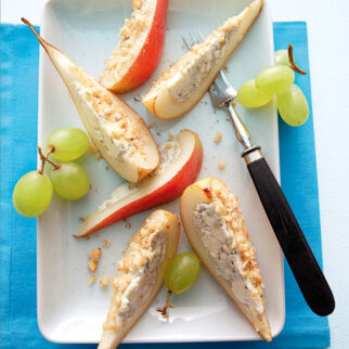 Roquefort würfeln und mit Ricotta in eine Schüssel geben. Die Birne waschen, schälen, vierteln und entkernen. Birnenviertel sehr klein würfeln, mit etwas Zitronensaft mischen und mit den Semmelbröseln in die Schüssel geben. Alles sehr gründlich mischen und ca. 8 Std. oder über Nacht in den Kühlschrank stellen.