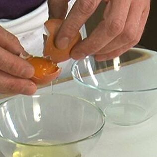 Eiweiß in einem Mixer schaumig schlagen und langsam Zucker einrieseln lassen. Milch, Mehl und Farbe dazugeben und gründlich verrühren. Anschließend 15 Minuten quellen lassen. In der Zwischenzeit den Ofen vorheizen (200 °C Ober-/Unterhitze / 175 °C Umluft).