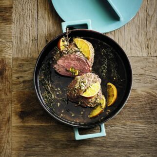 Die Gemüsebrühe angießen, pfeffern und zum Kochen bringen. Das Gemüse darin zugedeckt in 15-20 Min. bei kleiner Hitze garen. Vor dem Servieren nochmals mit Pfeffer und Salz abschmecken.
