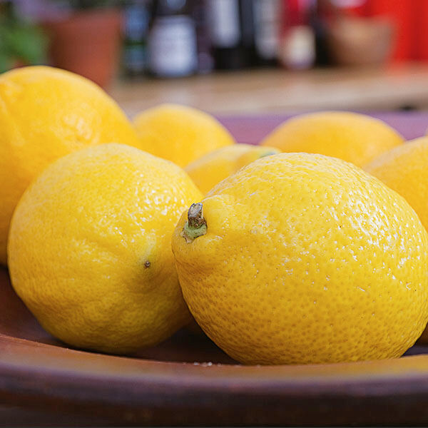 Inzwischen die Zitrone heiß waschen und abtrocknen, die Schale fein abreiben. Die Sahne und die Zitronenschale zum Rosenkohl geben und das Gemüse mit Salz und Pfeffer abschmecken.