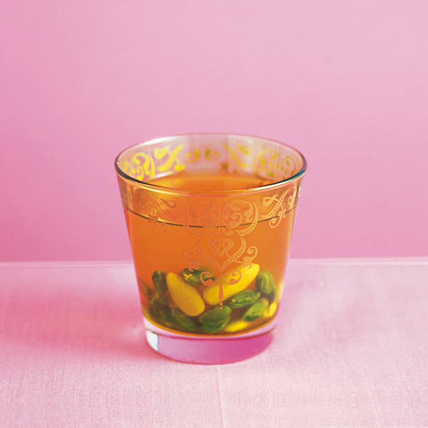 Das Rosinengetränk am vierten Tag durch ein Sieb gießen und mit Orangenblütenwasser aromatisieren. Die Mandeln, Pistazien und Cashewkerne in kaltem Wasser 2 Std. einweichen. Auf Gläser verteilen und mit eisgekühltem Dschalab auffüllen.