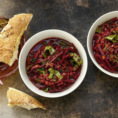 Diese Rote-Bete-Linsen-Suppe wird in Persien als Vorspeise oder Maze serviert und ist besonders im Herbst ein Genuss.