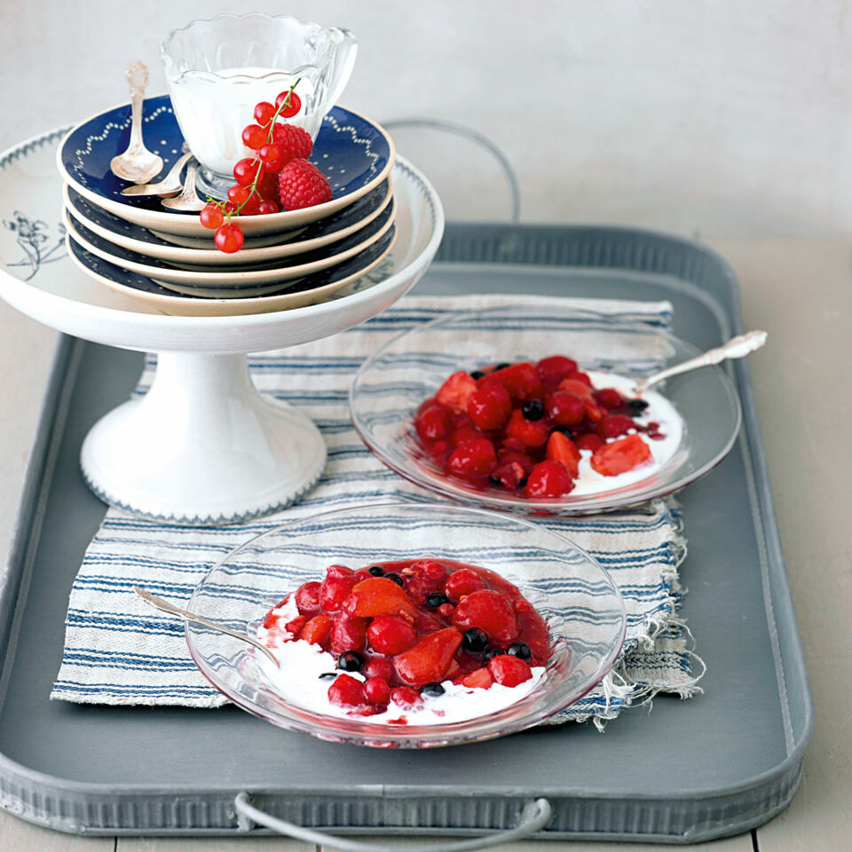 Dieses Rezept zeigt ihre wahre Natur: als Fest für die schönsten Beeren des Sommers. Wer mag, mildert ihre herbe Säure durch sanfte Vanillesauce oder flüssige Sahne.