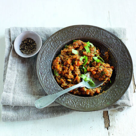 Zum feinen Rote-Linsen-Aufstrich schmecken Chapati oder Naan (indische Fladenbrote), aber auch Stangenweißbrot oder türkisches Fladenbrot. Er hält sich ca. 7 Tage.