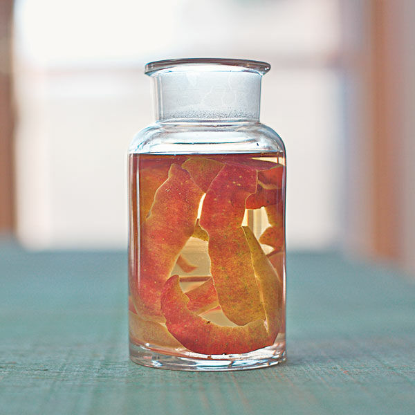Die Äpfel gründlich waschen, schälen und nur die Schalen in eine weithalsige Flasche geben. Doppelkorn aufgießen, Flasche verschließen. Den Ansatz 4 Wochen warm und dunkel ziehen lassen.