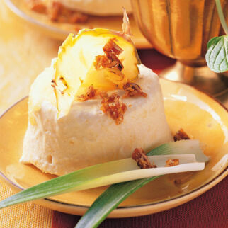 Die Masse in Formen füllen und 3-4 Std. gefrieren lassen. Am besten mit heißen Kirschen oder Himbeeren servieren.