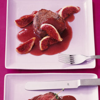 Inzwischen Schalotten schälen. Butter in einer Pfanne erhitzen. Zucker, Schalotten und 1 Prise Salz dazugeben, 2 Min. karamellisieren lassen. Fond und Essig angießen und 10 Min. köcheln lassen. Balsamico-Schalotten zu den Steaks servieren.