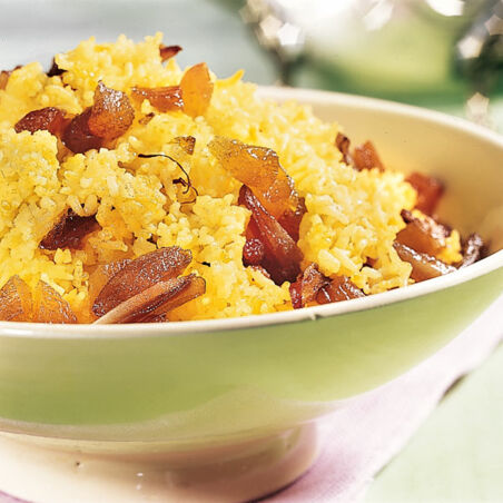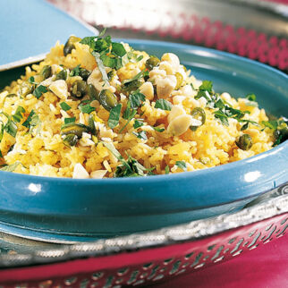 Leuchtend gelb und fruchtig - der Reis mit Aprikosen passt sehr gut zu Lammgerichten.