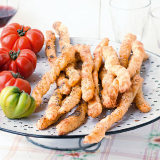 Das Backpapier mit dem Kranz vorsichtig auf ein Backblech heben oder ziehen. Mit Parmesan bestreuen, im Backofen (unten, Umluft 200°) in knapp 20 Min. goldbraun backen.