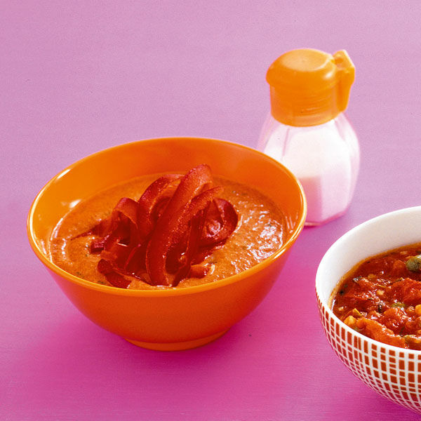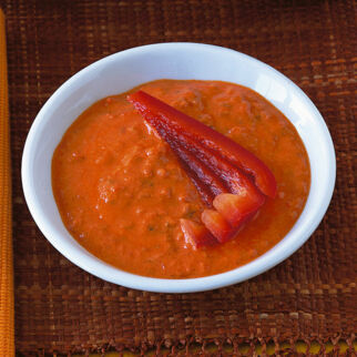 Diese Paprikasauce ist blitzschnell zubereitet, denn dafür werden gehäutete Schoten aus dem Glas verwendet.