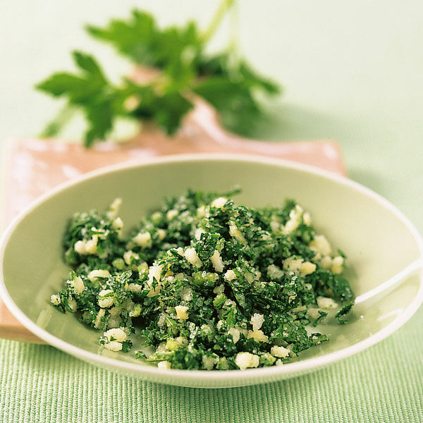 Die Mischung ist praktisch, wenn einmal keine frische Petersilie im Haus ist. Würzt Suppen, Saucen, Schmorgerichte.
