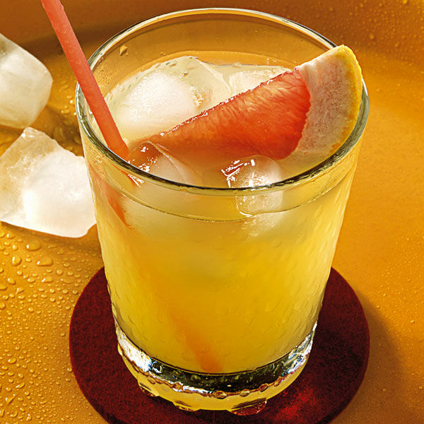 Das süßsaure Drink-Vergnügen entsteht durch Grapefruitsaft, Limetten- und Vanillesirup zusammen mit Gin und Orangenlikör.
