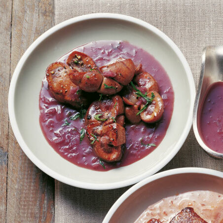 Wer Innereien liebt komt bei diesem Gericht voll auf seine Kosten - die würzigen Aromen von Rotwein und Zwiebel ergänzen sich perfekt mit den Nieren.