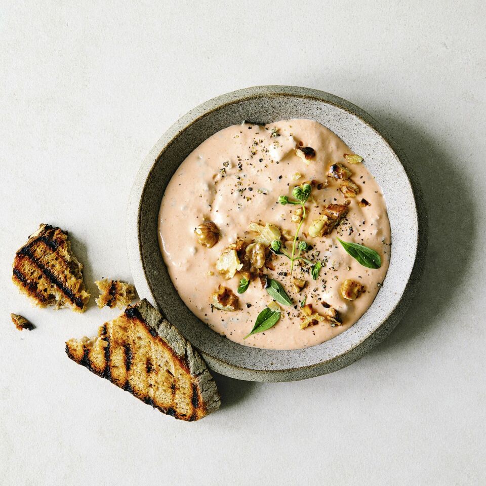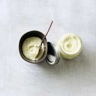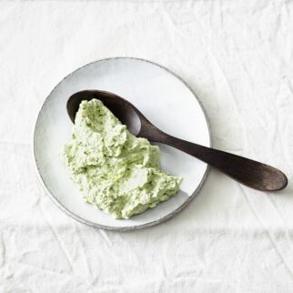 Ein leckerer vegetarischer Feta-Aufstrich schmeckt gut auf Brot – egal ob morgens oder abends.