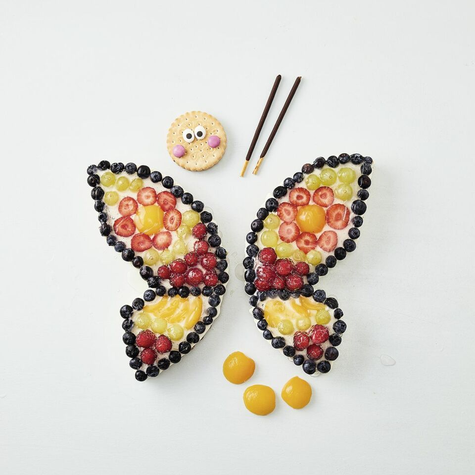 Obstkuchen mal anders: Dieser zauberhafte Schmetterlingskuchen passt perfekt auf jedes Brunch-Buffet oder zum nächsten Kindergeburtstag.