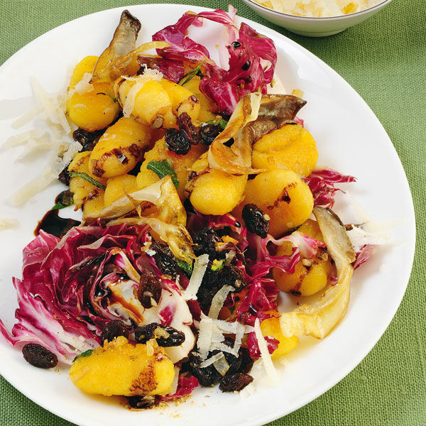 Gnocchi und Radicchio sind ein feiner Import aus Norditalien - zusammen kombiniert mit Rosinen und Austernpilzen werden sie zum perfekten Abendessen.