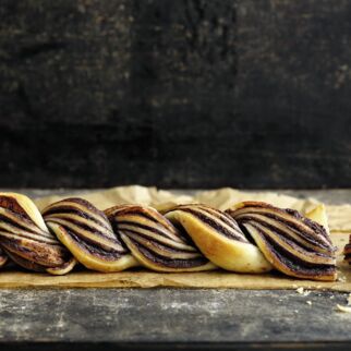 Kleine Rollen backen schneller. Dazu die Streifen einfach zu kleinen Schnecken aufrollen und jeweils einen Holzstab in der Mitte durchstechen, sodass sie sicher zusammenhalten. Die Schnecken auf einem mit Backpapier ausgelegten Backblech verteilen und in 12-15 Min. goldbraun backen.