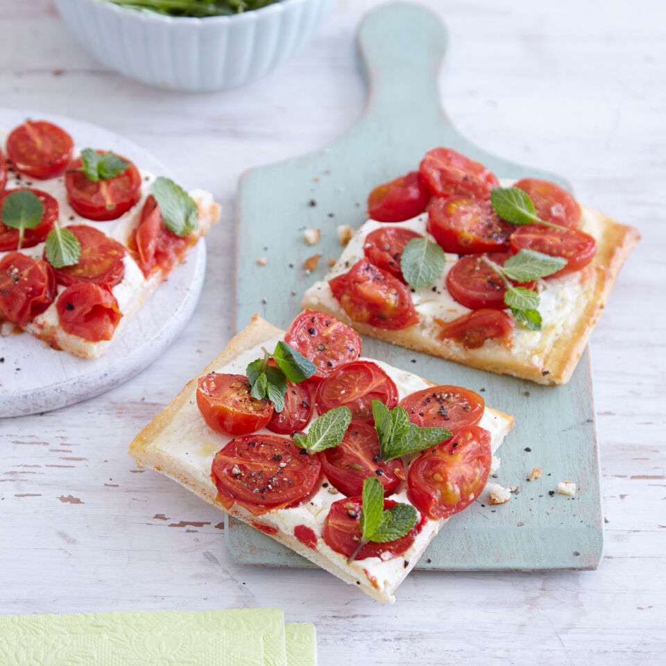 Schnelle Pizza mit Schafskäsecreme und Tomaten