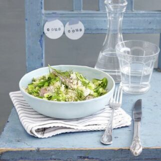 Paprika-, Zwiebel- und Roastbeefstreifen mit dem Schnittlauch mischen. Das Dressing unterrühren und alles mit Salz und Pfeffer abschmecken. Den Salat sofort servieren oder ca. 1 Std. zugedeckt durchziehen lassen. Dazu schmeckt dunkles Brot oder Bratkartoffeln.