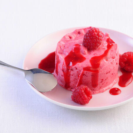Ganz ohne Eismaschine verwandelt sich Vanilleeis ganz schnell in sahnig-fruchtiges Himbeereis. Und dazu gibt es frische Himbeeren und eine fruchtige Sauce mit Schwips.