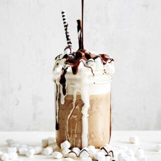 Die Marshmallows auf die heiße Schokolade geben und die Erdnüsse darüberstreuen. Das Getränk am besten mit einem dicken Trinkhalm oder einem Löffel servieren.