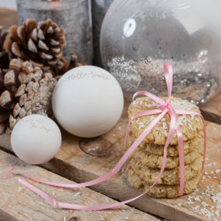Mandelmus auf die flache Seite streichen. Eine Hälfte in Mandelsplitter tauchen. Anschließend beide Hälften zusammenfügen und in den Tiefkühlschrank legen.