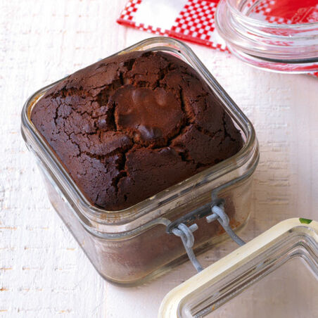 Schokoladenmasse auf die Gläser verteilen. Die Kuchen in den Ofen (Mitte) stellen und etwa 15 Min. backen. Abkühlen lassen und dann aus dem Glas genießen.
